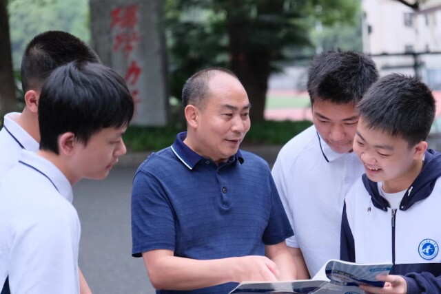 清晨,他正在进行早自习巡查工作。5层楼、24个教学班、1327名高二学生,他沿着1号教学楼里里外外一个不落地查看。