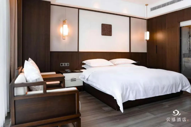 云禧酒店地理位置优越。酒店新中式风格元素与现代轻奢兼柔,环境舒适温馨,是常德北部新城现代雅居的新名片。