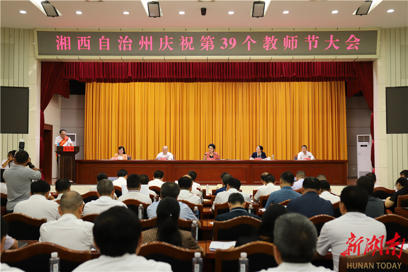 湖南日报·新湖南客户端9月8日讯(记者 莫成 通讯员 向鹏)9月8日上午,湘西土家族苗族自治州召开庆祝第39个教师节大会,对“最美教师”“师德标兵”“优秀校长”“优秀班主任”“优秀教育工作者”、扎根农村30年优秀教师暨“君天同心烛光奖”等进行表彰。