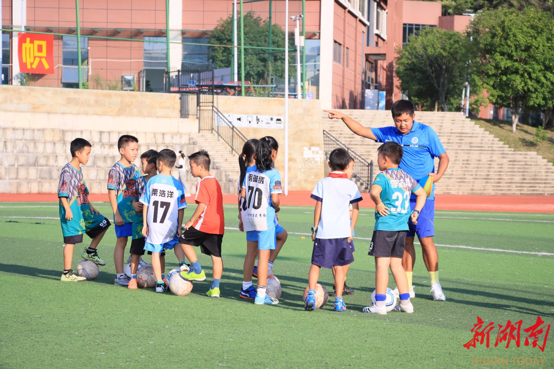 “带球跑快点,别被拦截!”“快,传球!射门!”9月8日傍晚的城北学校足球场,十多个孩子正在追逐着足球,训练声、口哨声与欢笑声在校园里交织回响。操场边,一名男子扶腰立定,目不转睛地看着操场上飞奔的孩子们。