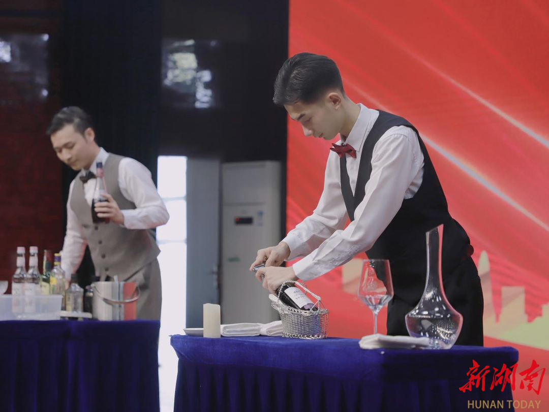 会上,来自该校湘菜学院的学生展示了鸡尾酒调试、老酒侍酒服务,在特别的日子里,给老师们送上一份特别的礼物。这支团队,在学校老师的细心指导下,在全国职业院校技能大赛酒水服务赛项中获金牌。