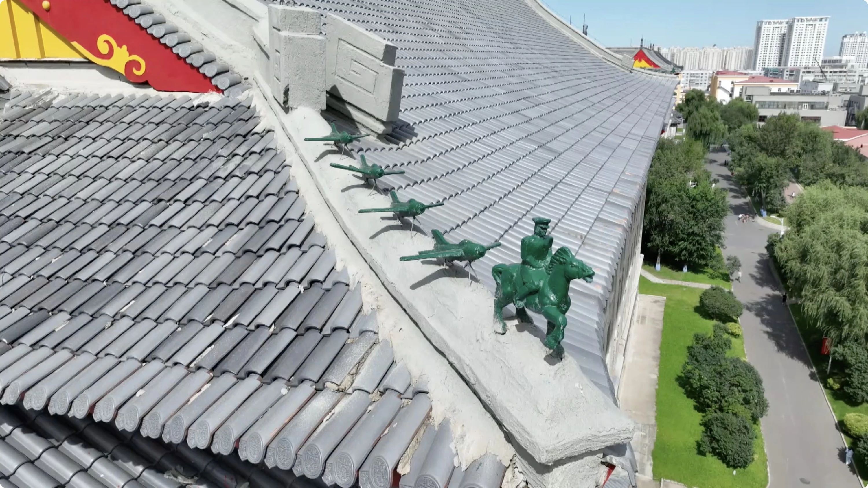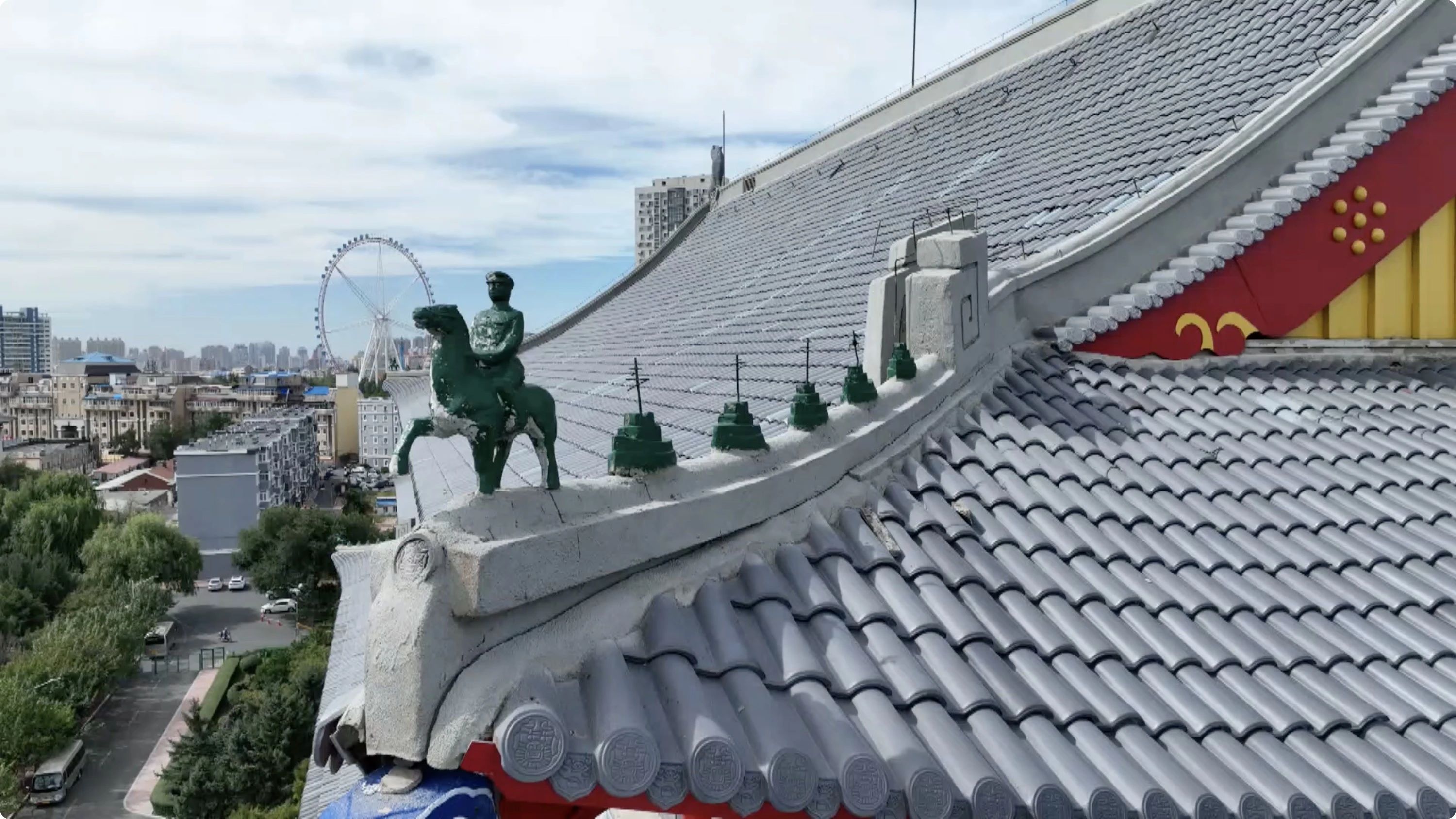 在哈工程教学楼的屋脊上