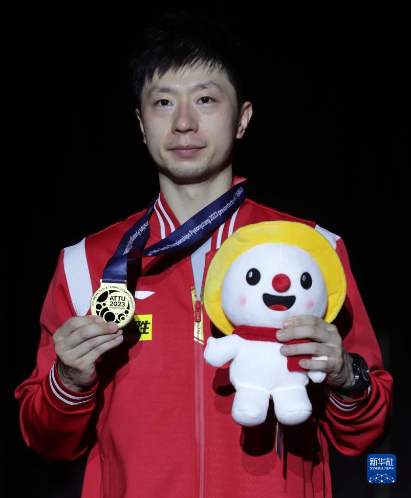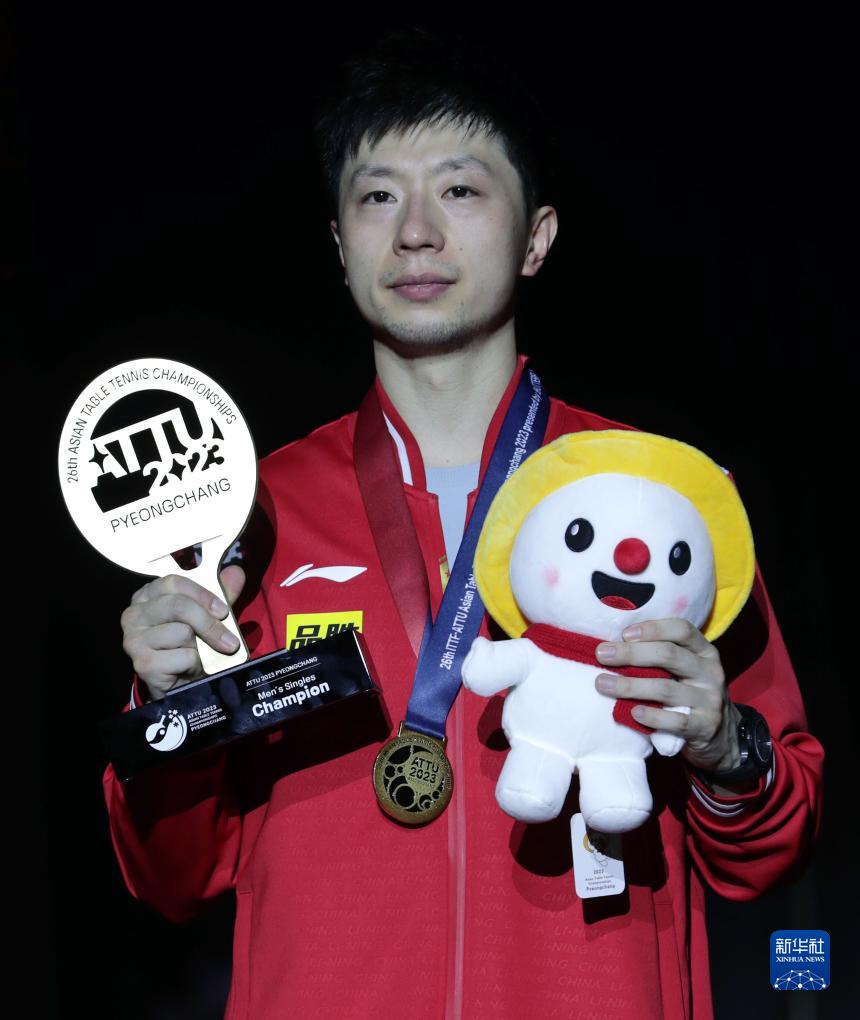 当日,2023年乒乓球亚锦赛男单决赛在韩国平昌举行。中国队选手马龙以3比2战胜队友樊振东,夺得冠军。