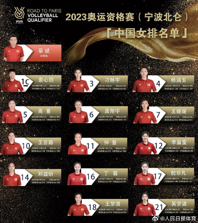 巴黎奥运资格赛中国女排名单公布,赛程安排→