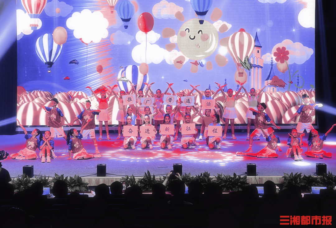 三湘都市报·新湖南客户端9月12日讯(全媒体记者 杨斯涵 黄京 通讯员 钟洁芸 李慧 赵影影 周文)“学好普通话热爱我中华,推广普通话绽放文明花……”9月12日,在长沙市开福区少年宫,以“推广普通话 奋进新征程”为主题的湖南省第26届全国推广普通话宣传周正式启动,清水塘江湾小学的孩子们用舞蹈抒发热爱,用活力推广普通话。