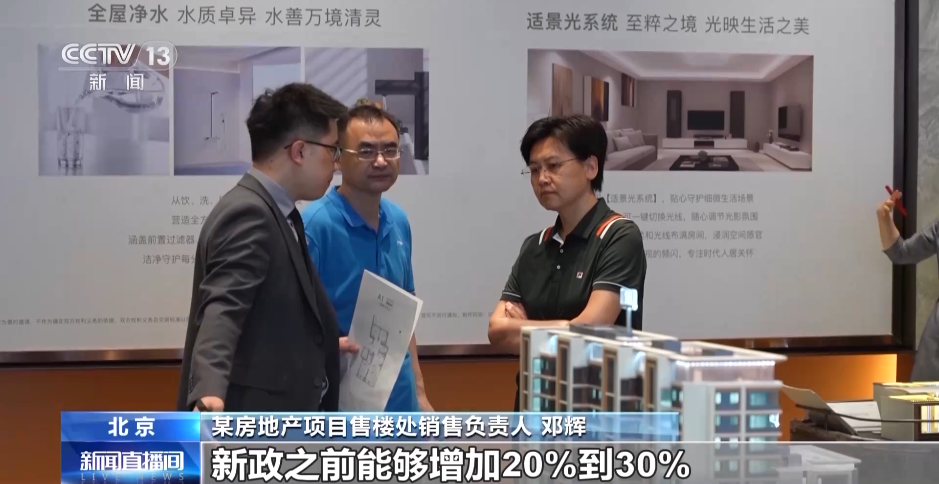 北京市某房地产项目售楼处销售负责人 邓辉:客户量的变化还是比较明显的,我们项目客流量能够感觉到每周基本上到新政之前能够增加20%到30%,像我们之前一周的到访量可能在200到300左右,有一个明显的提升。