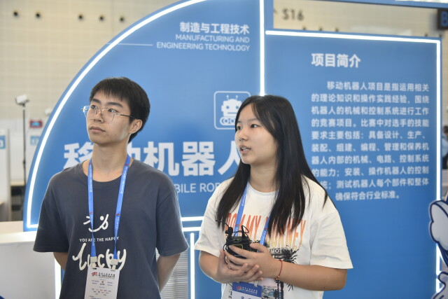 (移动机器人赛项选手黄晶琦、周贤亮。以上图片均由巩如泉摄)