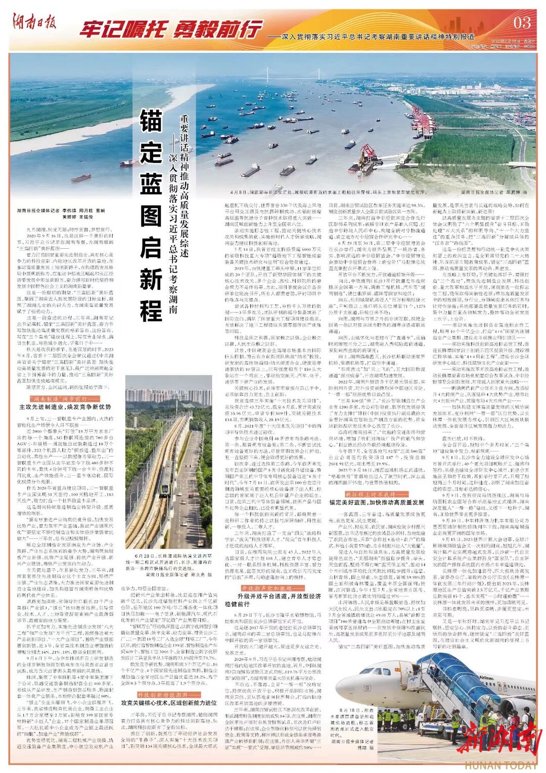 这是一段奋进的历程。三年来,湖南牢记总书记嘱托,锚定“三高四新”美好蓝图,奋力书写加快推动高质量发展的精彩答卷。这份答卷,写在“三个高地”建设征程上,写在青山绿水、满目生机里,写在城乡烟火、平常日子中……
