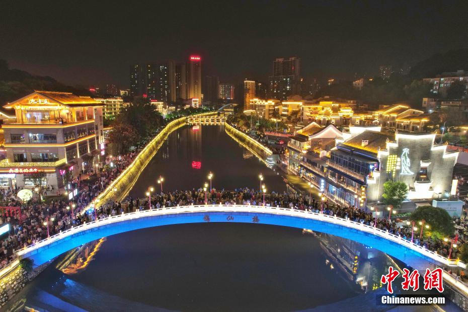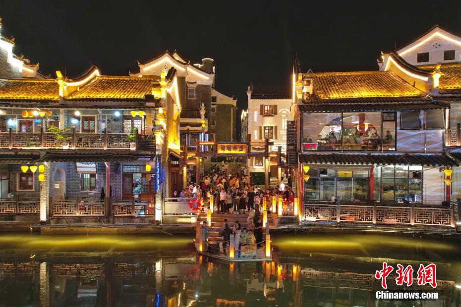 9月15日晚,海外华媒代表来到湖南郴州北湖公园和裕后街,感受当地火热的“夜经济”。近年来,郴州通过深度治理、优化水质、空气、环境,让生态环境得到极大改善,并积极挖掘夜间消费市场,让“老商圈”迸发新活力。图为仿生“凤凰”飞行器翱翔在裕后街上空。