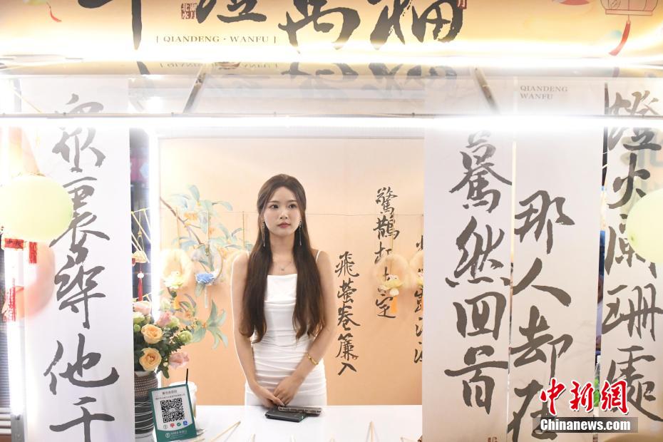 图为北湖公园星光集市一商户正在售卖文创灯笼。