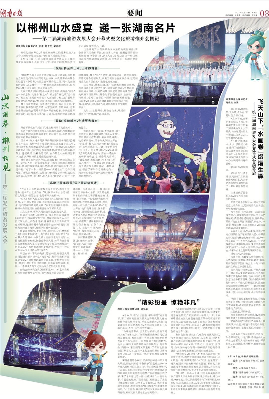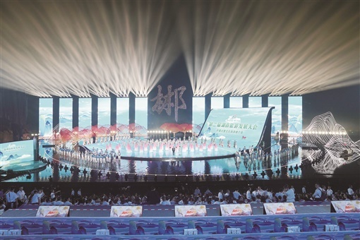 9月16日晚上,第二届湖南旅游发展大会开幕式暨文化旅游推介会在飞天山下、翠江之畔的苏仙区飞天山实景演艺中心上演。