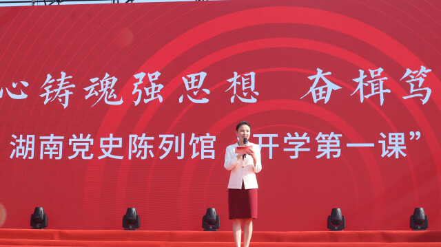 开学典礼结束后,湖南师大还举行了“凝心铸魂强思想奋楫笃行建新功”新生党史国情教育暨湖南党史陈列馆“开学第一课”研学活动。红色故事宣讲团声情并茂,引导新生传承红色基因,凝聚向上向善的正能量,争做新时代有志青年。