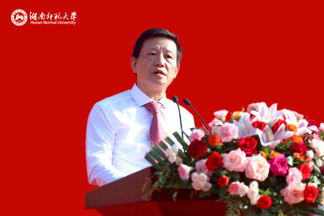 他对全体新生提出殷切期望:一是希望大家读书知礼,心存感恩。读书既能让我们增知益见,开阔眼界;又能明德知礼,修身养性。岳麓山下好读书,期待大家都能静下心读书致知、读书明理,带着温情与敬意在经典著作中触摸智慧、学会感恩、汲取力量。坚持读书知礼,努力成为一个知书达理、知恩图报、知责奋进的师大人。二是希望大家创新求索,心系家国。我们的大学自创建之时,就以“做文化的先进,国民的导师”为理想,85年来,一代代师大人,赤诚爱国的追求始终未改,教育报国的初心始终未变。希望大家始终心怀“国之大者”,厚植家国情怀,勤于探索,善于思考,敢于创新,在不断求索和坚持中,努力成为一个追求真理、肩荷使命、全面发展的师大人。三是希望大家笃行实干,心怀梦想。当今世界正在经历百年未有之大变局,世界之变、时代之变、历史之变正加速演进,对于美好梦想的坚守弥足珍贵。希望大家踊跃投身到志愿服务、创新创业、乡村振兴、社会治理、国际交流中去,拓宽思维视野,全面提升素养,实现人生价值,在矢志奋斗、不懈拼搏中,努力成为一个立大志、明大德、成大才、担大任的师大人。