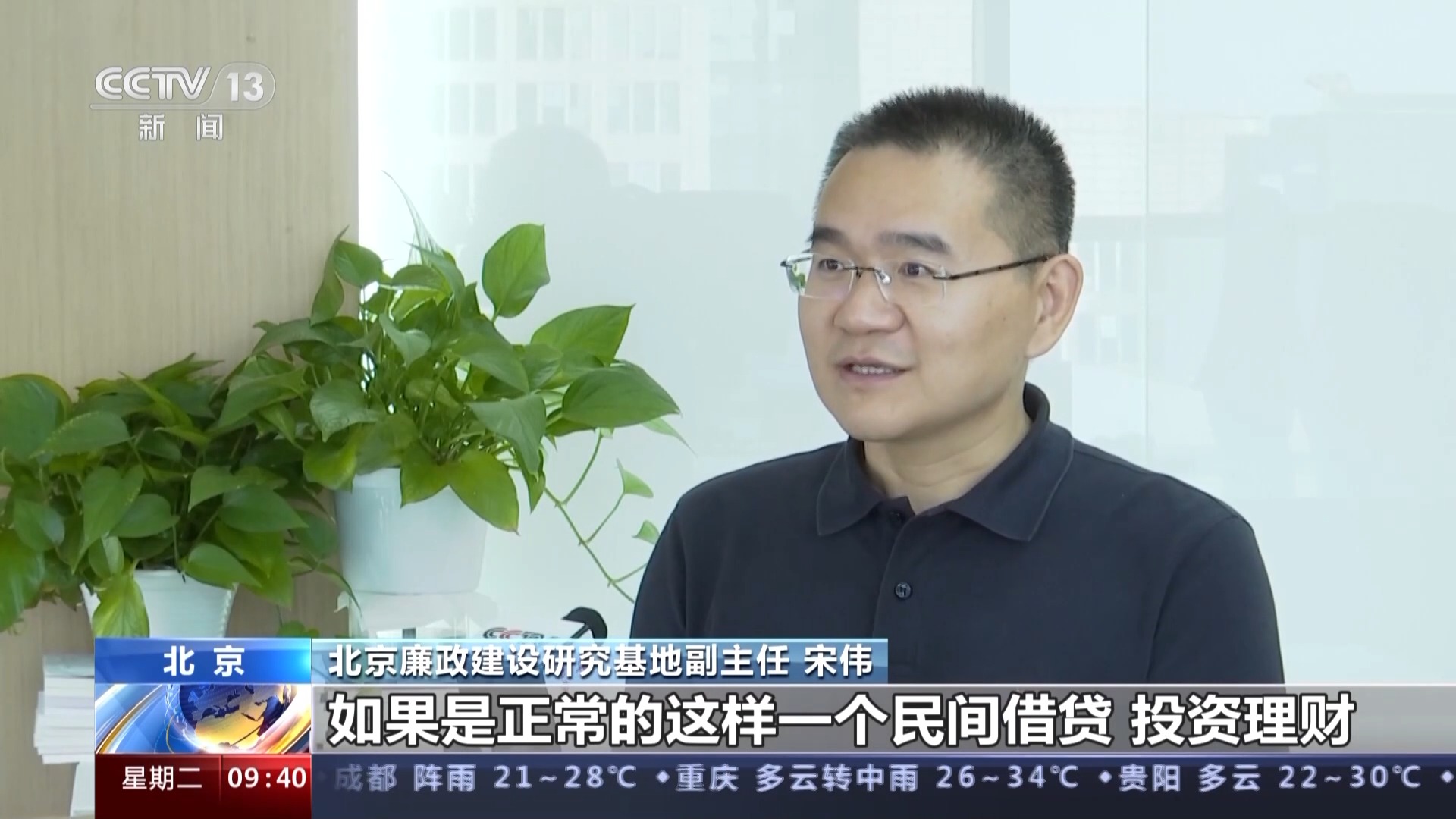 北京廉政建设研究基地副主任 宋伟:应该说在法律规定的范围内,如果是正常的这样一个民间借贷,投资理财应该是得到保护的。但是如果投资借贷的一方是领导干部,另外一方是管理服务对象,那实际上这种行为的本质就发生了变化,名义上看起来借的是钱,但实际上借的就是权,就是管理服务对象以高额的回报为成本,然后让领导干部通过其他方式提供某种程度上的便利。