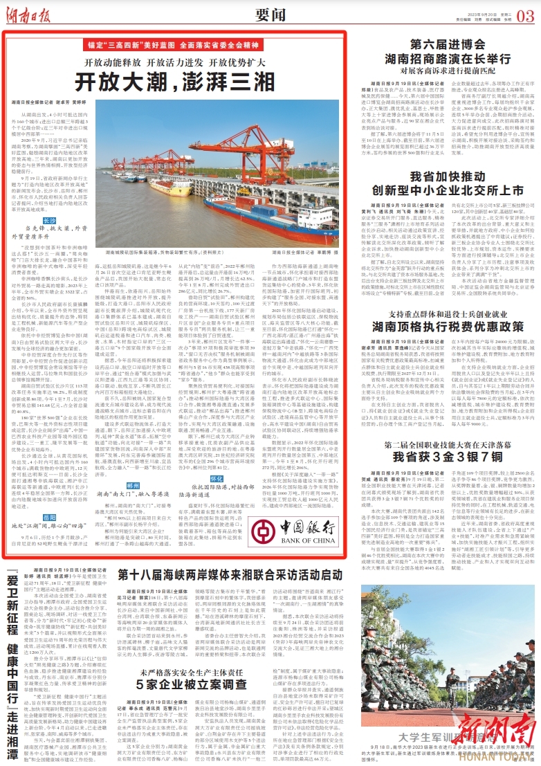 2020年9月,习近平总书记亲临湖南考察,为湖南擘画“三高四新”美好蓝图,勉励湖南打造内陆地区改革开放高地。三年来,湖南以更加开放的姿态与世界热情相拥,开放型经济稳健前行。