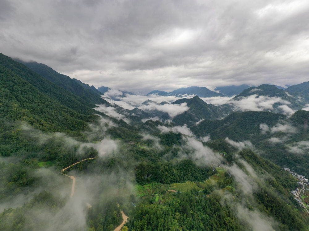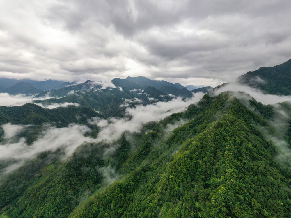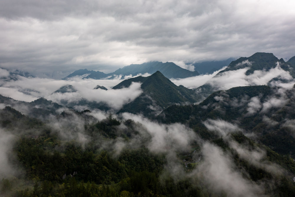 近日,一场秋雨过后,位于重庆市城口县的重庆大巴山国家级自然保护区出现雨后云海景观,云雾在山间变幻飘逸,青山和云雾相映成趣。