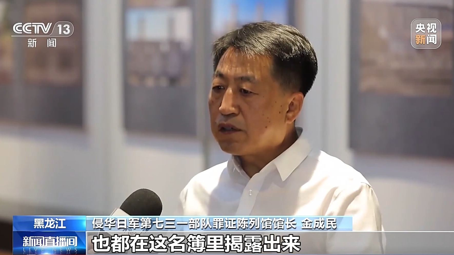 侵华日军第七三一部队罪证陈列馆馆长 金成民:七三一部队下属的4个支队的队长和相关的下边的尉官,也都在这名簿里揭露出来,这也是这次档案资料里面过去我们没有见过的一个特别的地方。