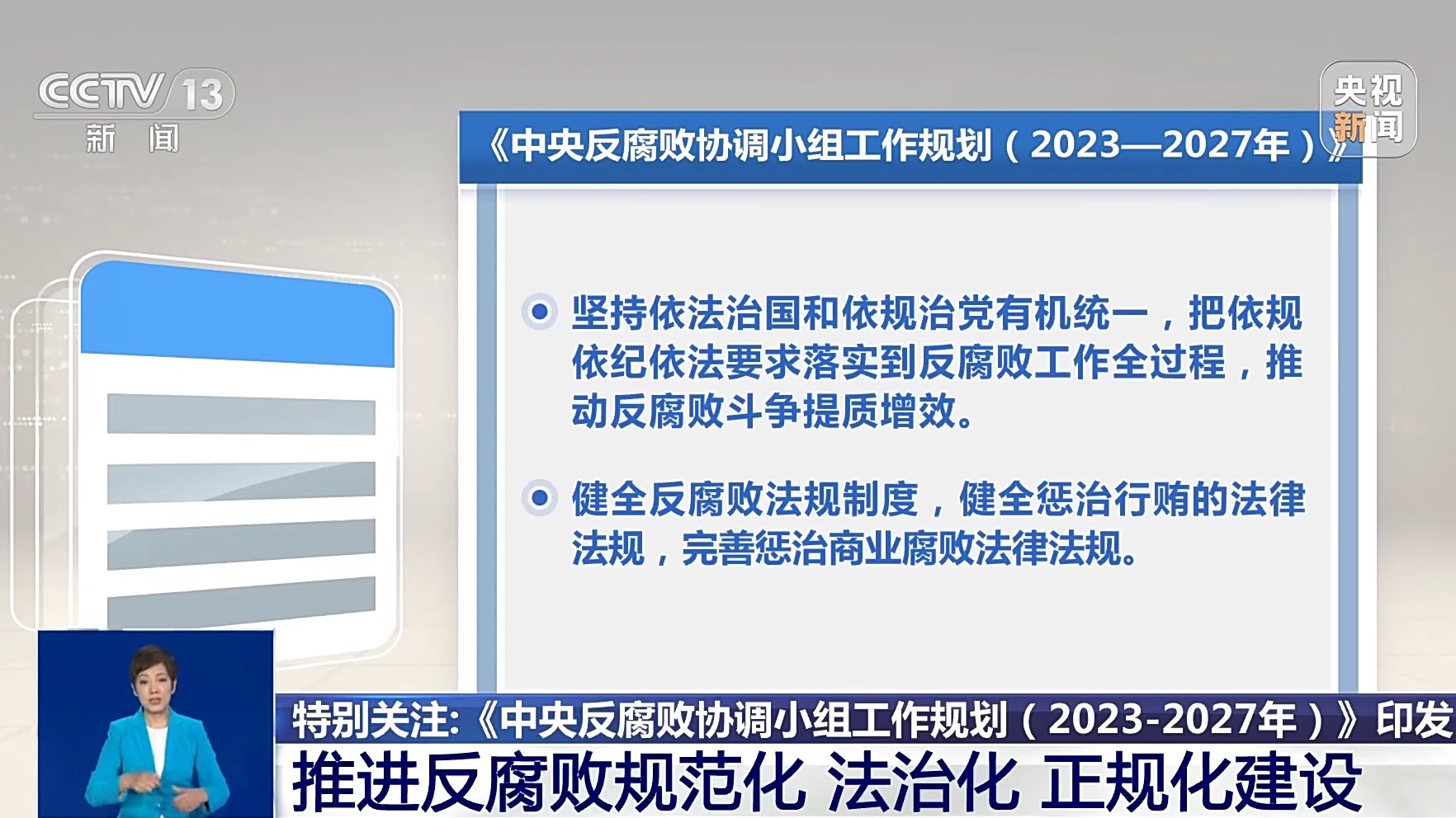 《规划》坚持依法治国和依规治党有机统一,把依规依纪依法要求落实到反腐败工作全过程,推动反腐败斗争提质增效。