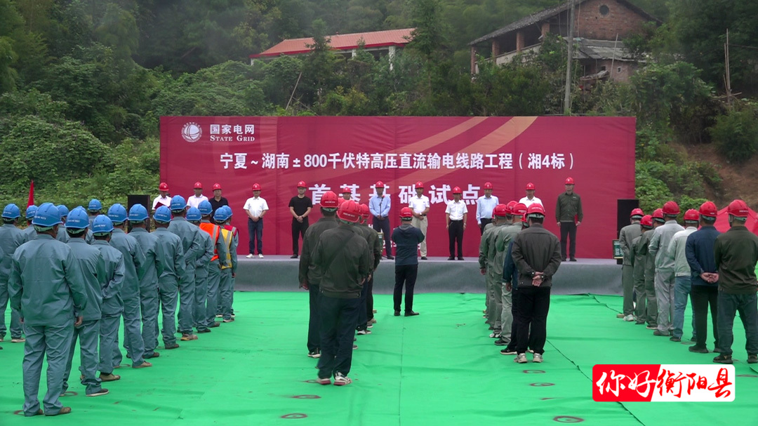 9月21日上午,宁夏-湖南±800千伏特高压直流输电工程(湘4标)基础首基试点开工仪式在衡阳县举行。