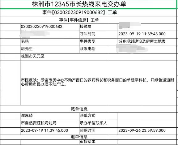 9月19日,株洲市不动产登记中心接到一个“特殊”的“12345”市长热线工作单,一名市民专门致电“12345”市长热线,不是为了反映问题,而是要求表扬不动产登记窗口工作人员。