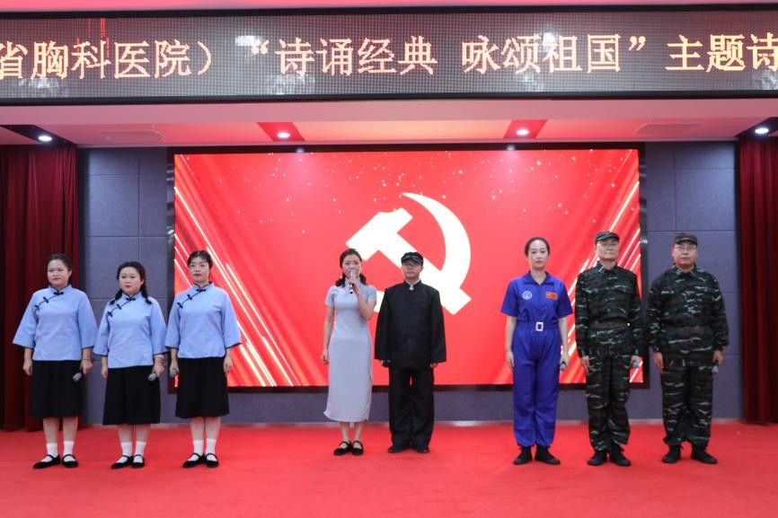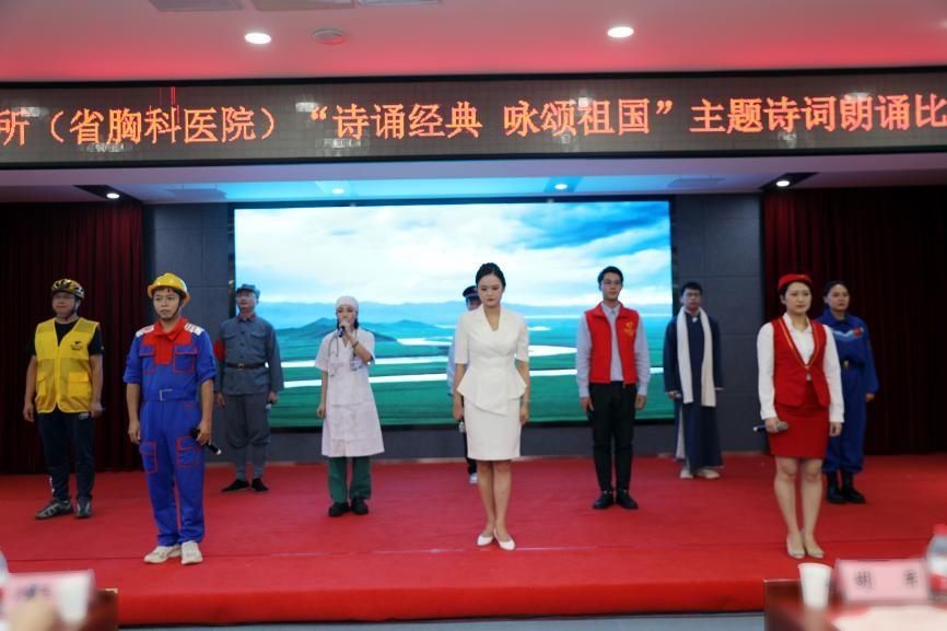 为庆祝中华人民共和国成立74周年,弘扬爱国主义精神,9月21日下午,湖南省结核病防治所(湖南省胸科医院)举办了“诗诵经典咏颂祖国”诗词朗诵比赛活动,广大职工以磅礴的气势和激昂的语言,全面展现了医者不忘医路初心,充分表达了对祖国的无限热爱。