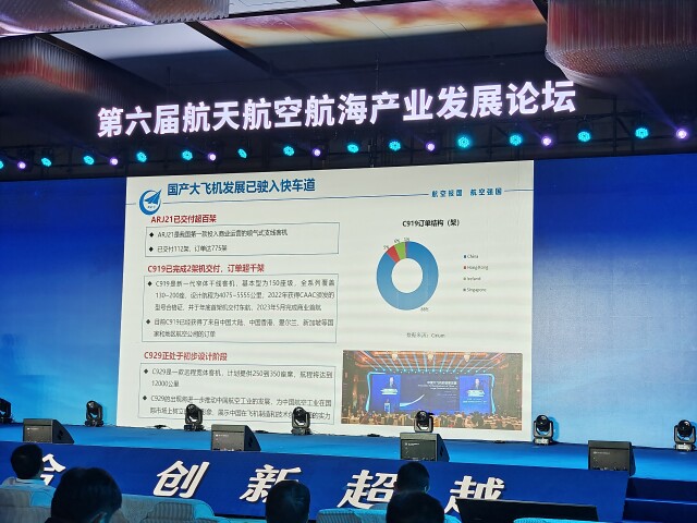 他介绍,支线飞机ARJ21已交付超百架,订单达775架。坐席为150个、航程5000公里的C919,已于2022年获得CAAC颁发的型号合格证,目前累计交付2架,并于2023年5月完成商业首航,已获得来自中国大陆、中国香港、爱尔兰、新加坡等国家和地区航空公司的订单超千架。