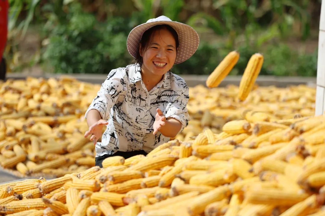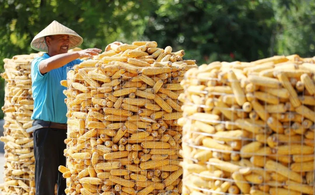 9月13日,山东省临沂市郯城县郯城街道陵坡村村民在整理收获的玉米。新华社发(张春雷摄)