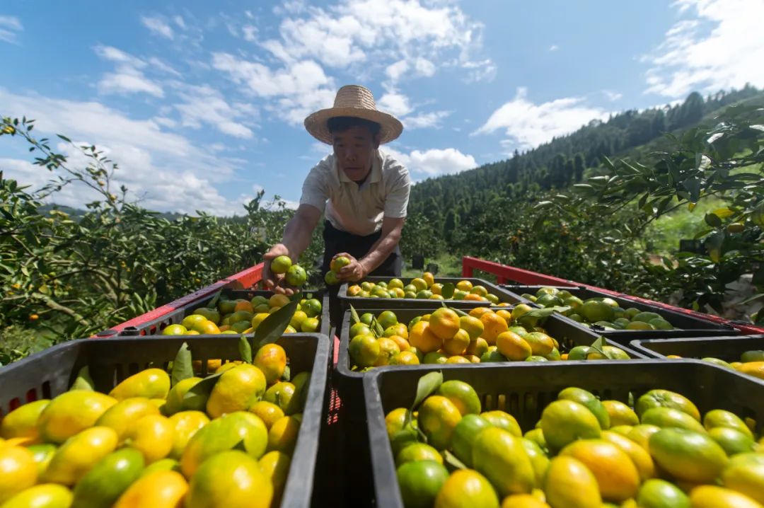 9月17日,果农在贵州省黔东南苗族侗族自治州从江县丙妹镇大塘村果场整理收获的柑橘。新华社发(吴德军摄)