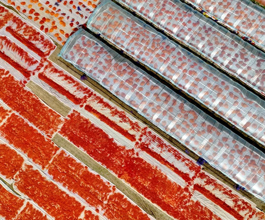 9月14日在安徽省亳州市谯城区双沟镇任小庙村拍摄的晾晒的辣椒。新华社发(刘勤利 摄)