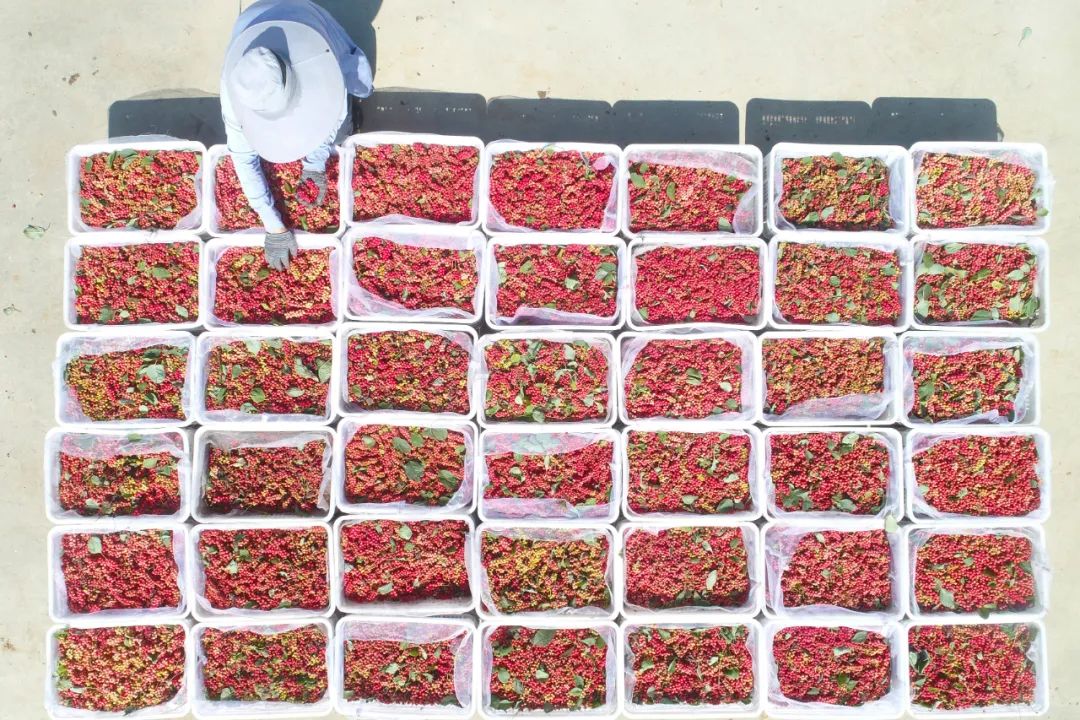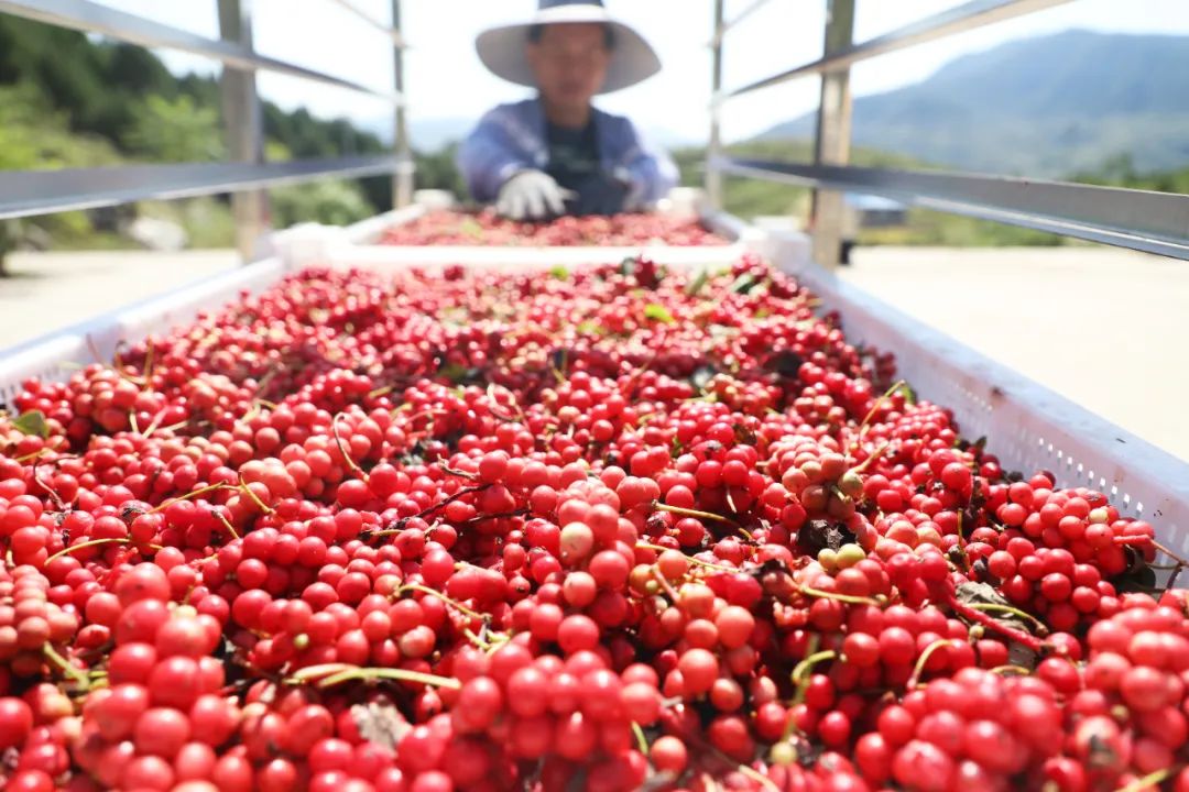 9月20日,在山东省新泰市刘杜镇,果农在采摘成熟的山楂。新华社记者 徐速绘 摄