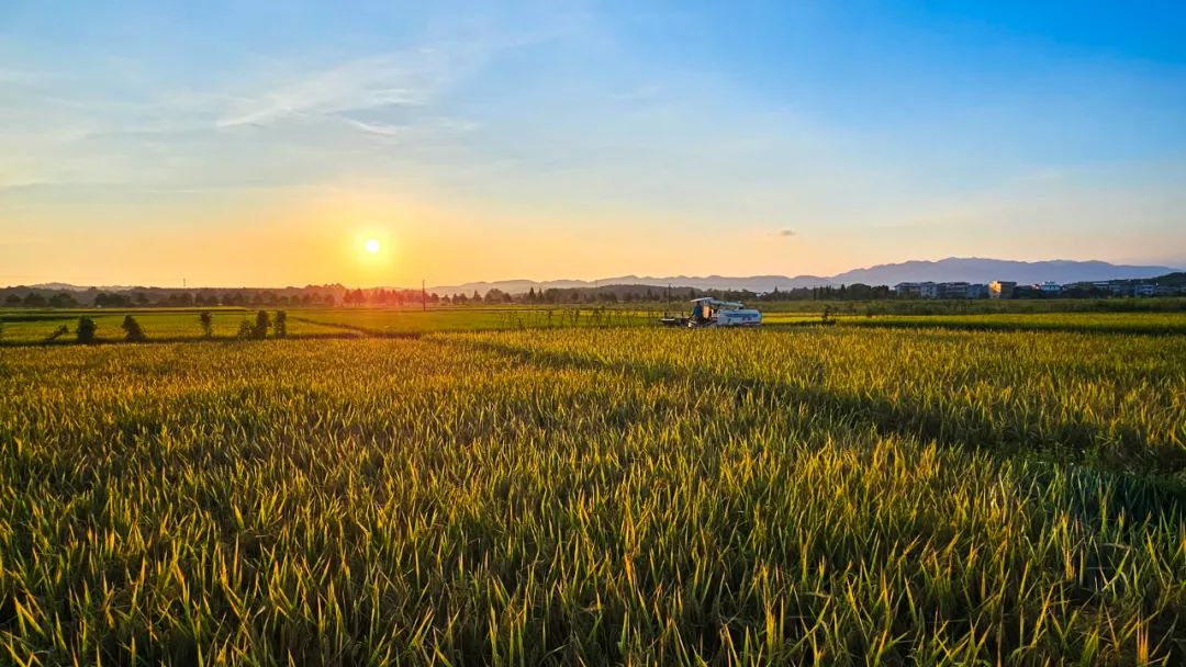 9月19日,湖南省常宁市三角塘镇农民驾驶收割机在收割水稻。新华社发(周秀鱼春 摄)