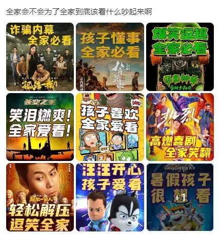 尤其是今年暑期档,这类海报不免“翻车”,“全家爱看”“全家必看”一时间成为核心关键词,网友不禁调侃,全家会不会为此吵起来。同质化的推荐语,自然难以引起观众兴趣,这种推荐反而适得其反。