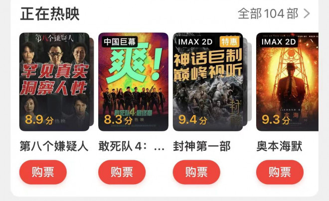 我们咨询了不少营销公司或者其他专家,大家都说不准这种海报具体是从什么时候兴起的,只是模糊记得是源自2022年,购票平台逐渐有了相应的海报。但毋庸置疑的是,今年暑期档中,这种海报的价值被强化,几乎所有重要的华语影片都有相应的海报。