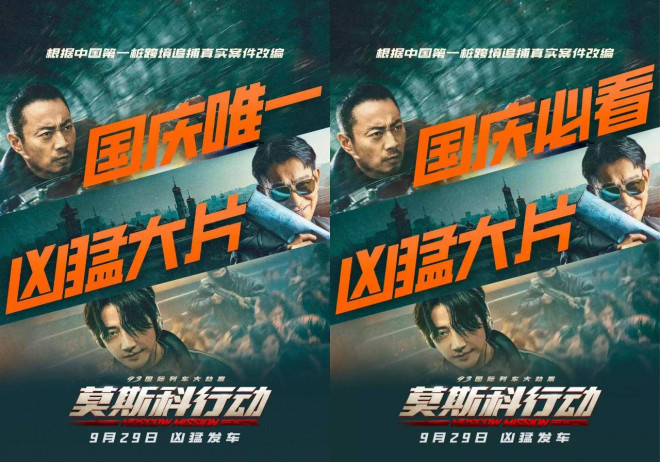 作为国庆档中,题材类型更突出的电影《莫斯科行动》,则分别在两个平台打出,“国庆唯一,凶猛大片”,以及“国庆首选,凶猛大片”。看来,对于片方而言,“凶猛”是他们目前的关键词。