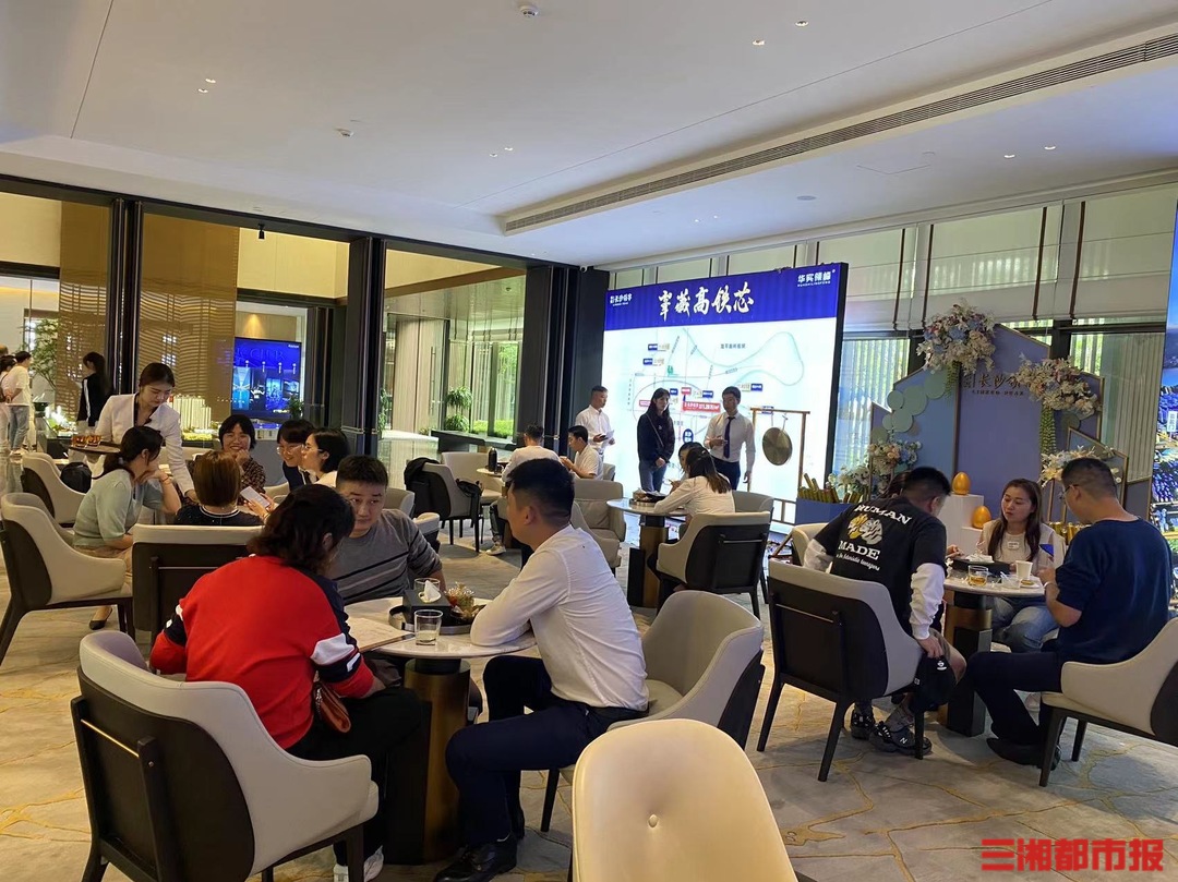 (在华实长沙领峯,不少外地客户正在咨询购房事宜。)