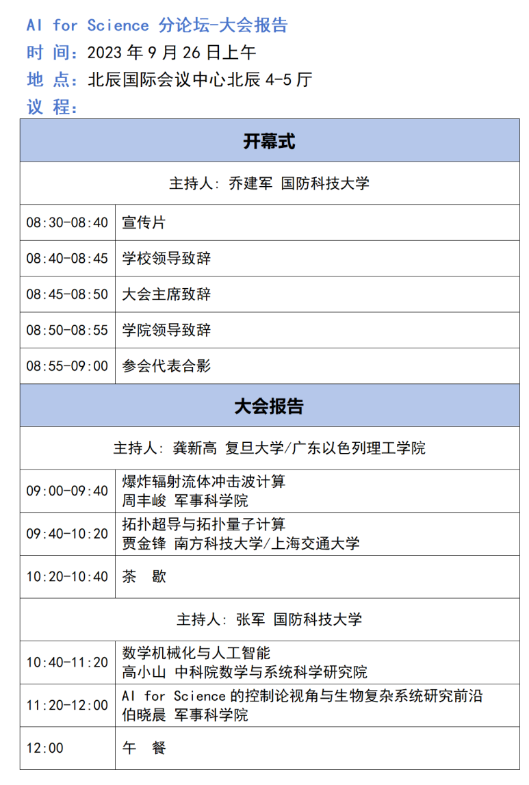为深入贯彻党的二十大精神和习近平强军思想,全面落实新时代军事教育方针和习主席贺信精神,庆祝国防科技大学建校70周年,首届国防科技高地论坛AI for Science分论坛,将于2023年9月26日在湖南长沙举办。