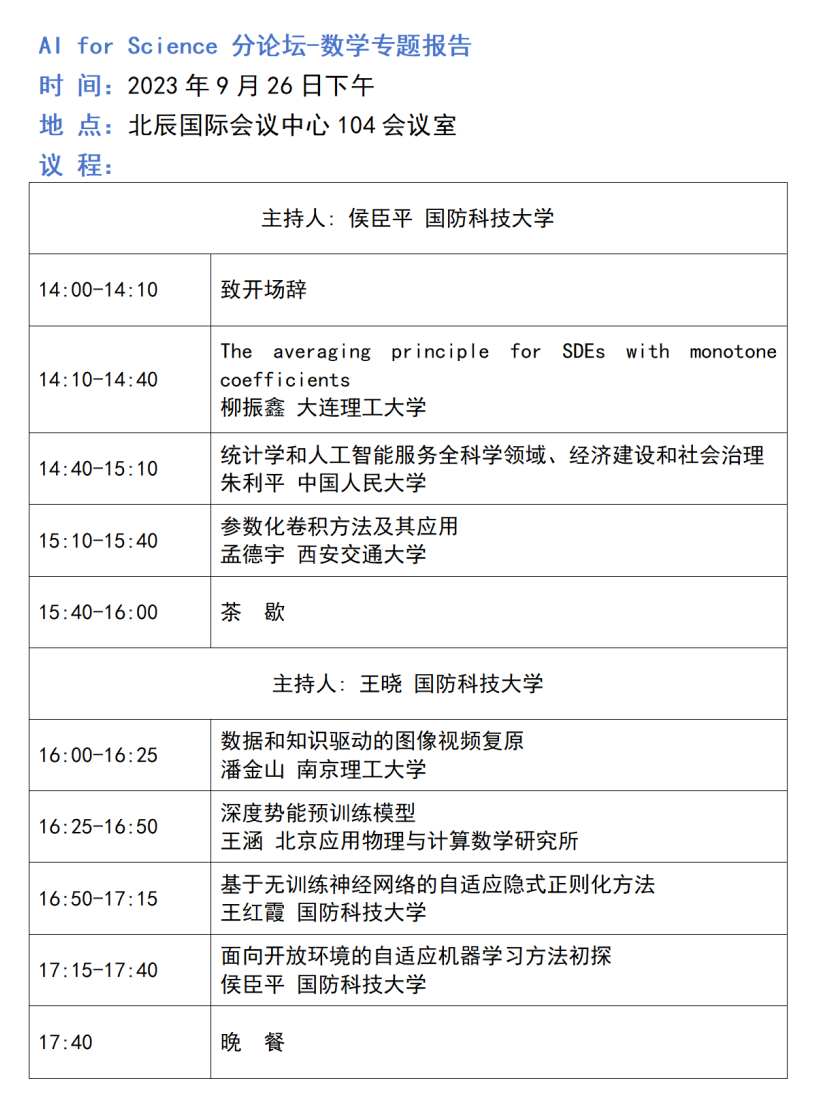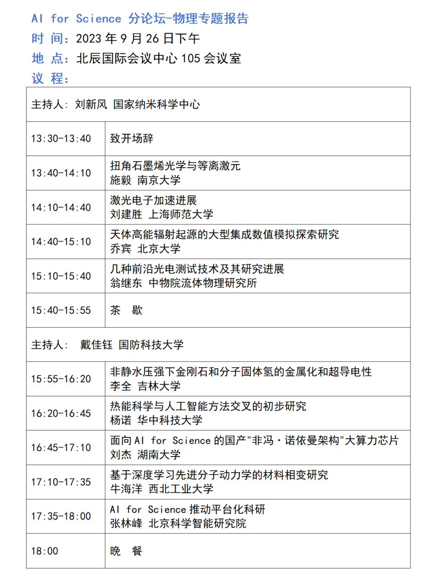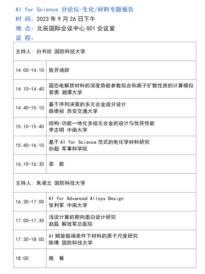 "AI for Science"分论坛第二轮公告