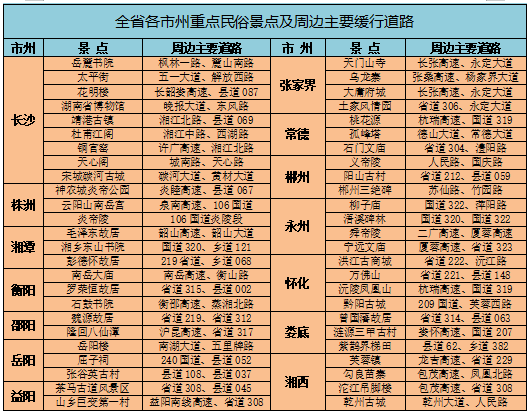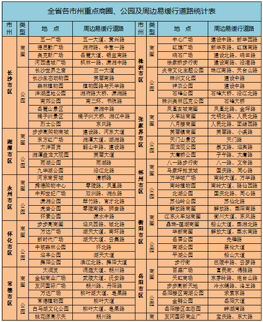 湖南热门商圈、景区周边哪些道路易堵,这份超全避堵统计表请收好!