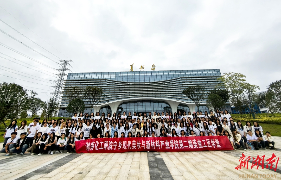 9月24日,湖南化工职院经济管理学院化妆品经营与管理专业2023级167名新生来到美丽的宁乡美妆谷开展“沉浸式”专业入学教育。