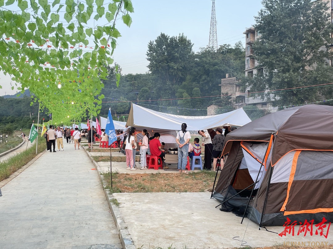 目前,该露营基地接待超过300名游客户外自助烧烤、唱歌娱乐、河边垂钓、露营游戏、举行大型篝火晚会等,还可品尝鱼市镇本土特色美食、时令水果。