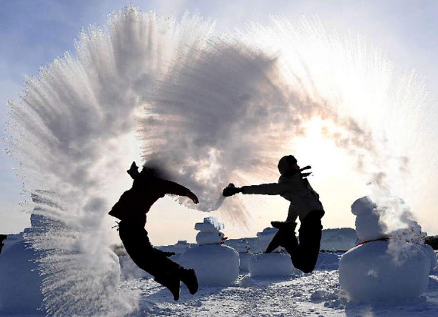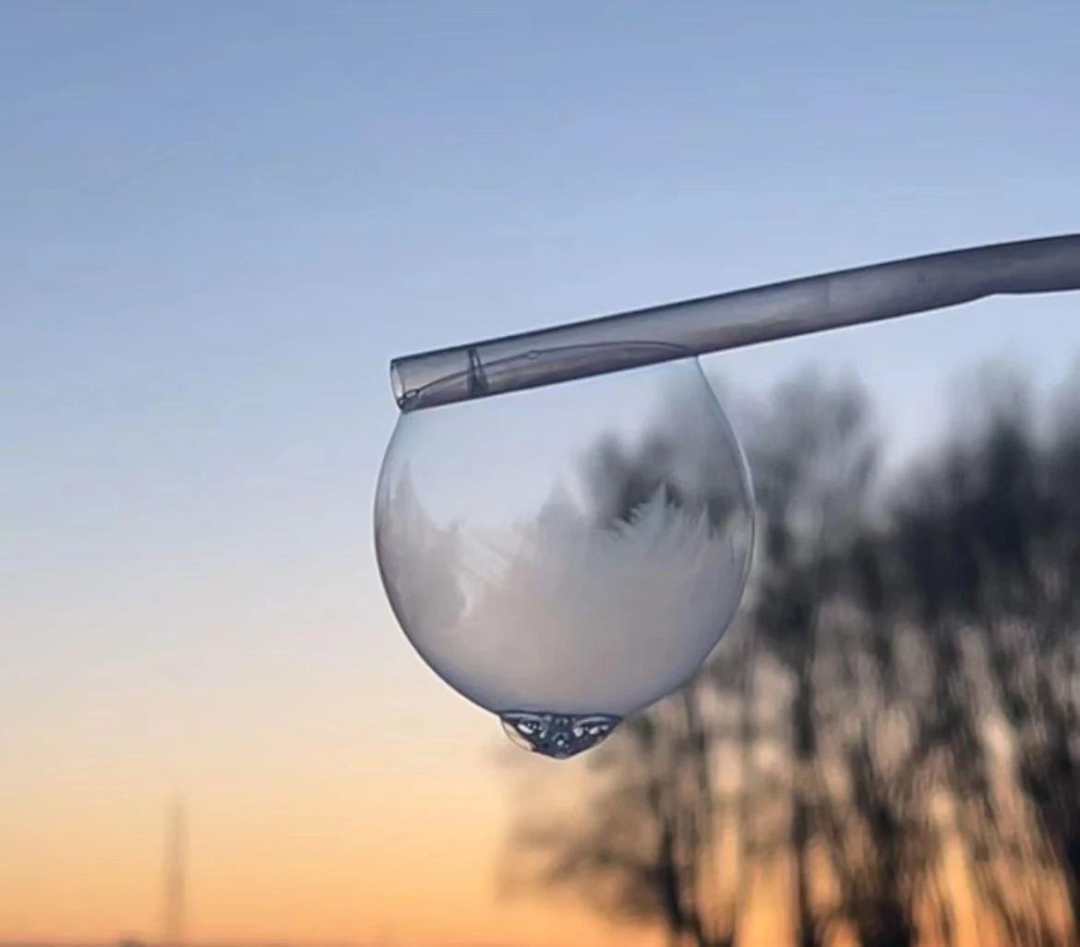 △9月27日,额尔古纳市体感较为寒冷,吹出的泡泡凝结成冰