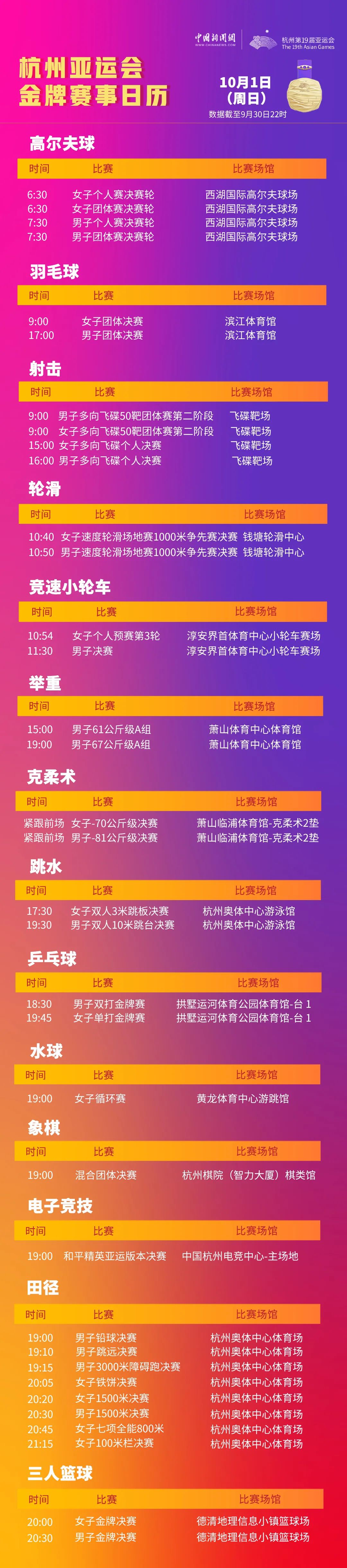 亚运会赛事日历|中国女排首秀,中国男足战韩国!