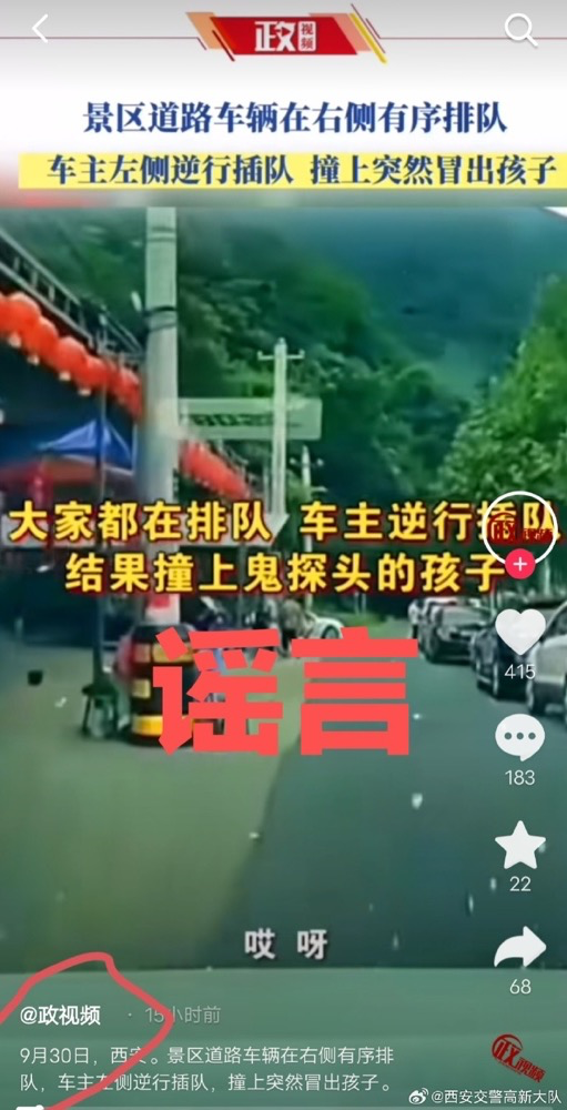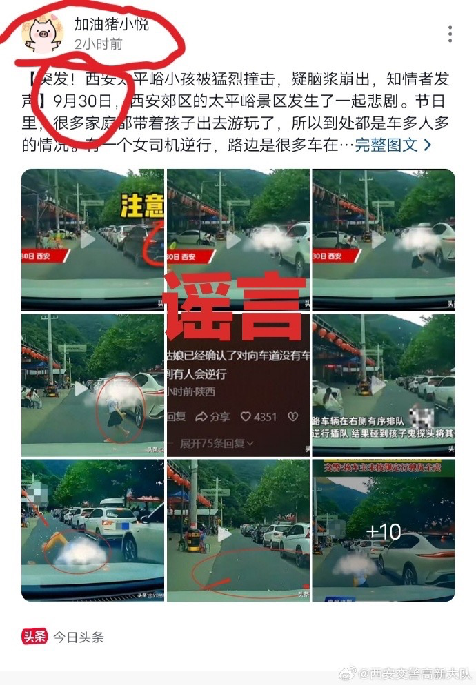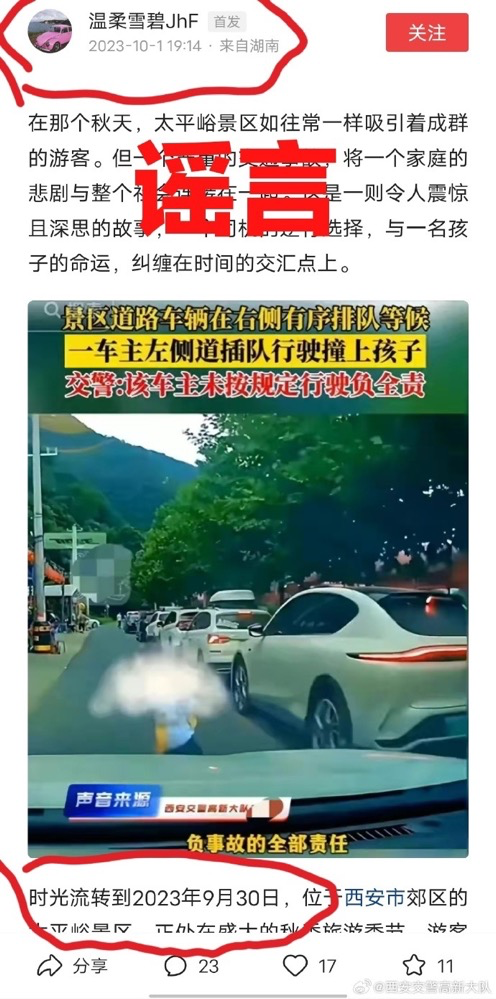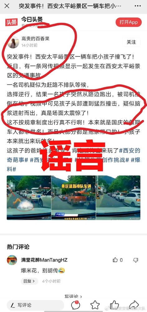 “西安某景区发生儿童被撞交通事故”?警方辟谣!