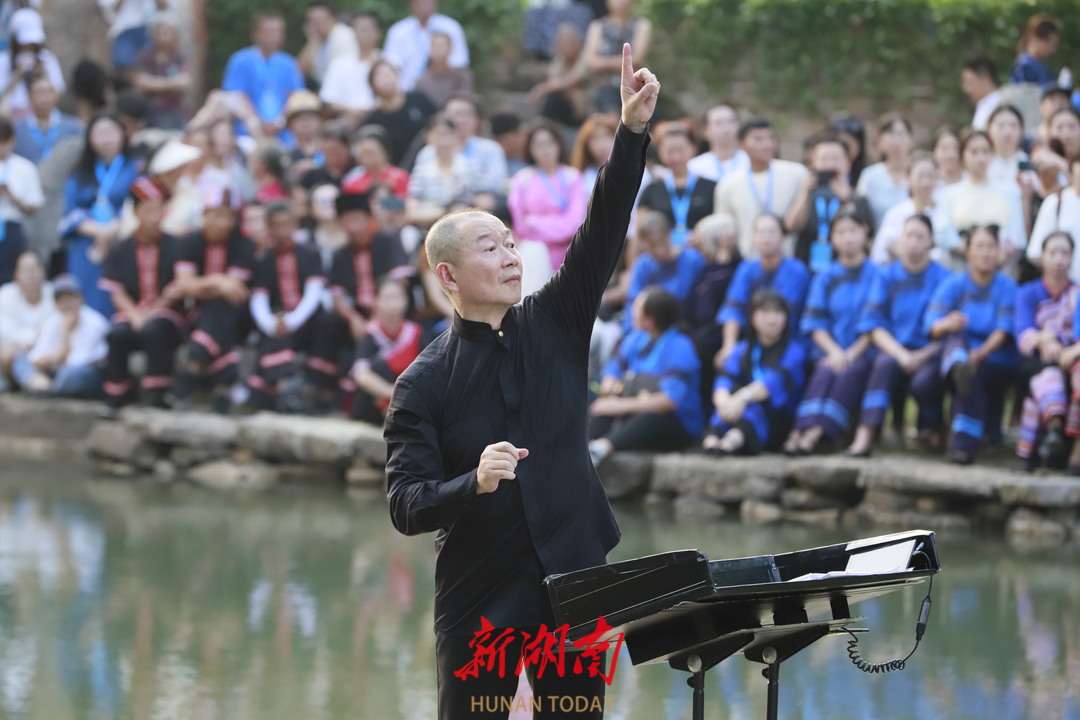 湖南日报·新湖南客户端10月2日讯(记者 龙文泱 刘涛 通讯员 李佳蔚 向靓 摄影 粟国光 朱寒冰)9月28日至10月1日,2023江永女书国际音乐旅游周在永州江永举行。著名作曲家、指挥家,长沙交响乐团终身荣誉艺术总监和指挥谭盾携手长沙交响乐团,与舞蹈艺术家杨丽萍、歌手谭维维、杭盖摇滚乐队、竖琴演奏家陈妤颖、唢呐演奏家刘雯雯等一起带来了两场精彩演出。