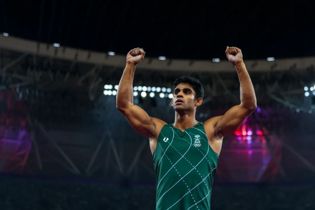当时,场上还有机会试跳的只剩下奥贝纳,但依旧选择留在场地中的,却不止他一人。当他开始助跑、加速,已经确认分获银、铜牌的中国选手黄博凯和沙特选手希扎姆,在场边高举双手为他鼓掌。