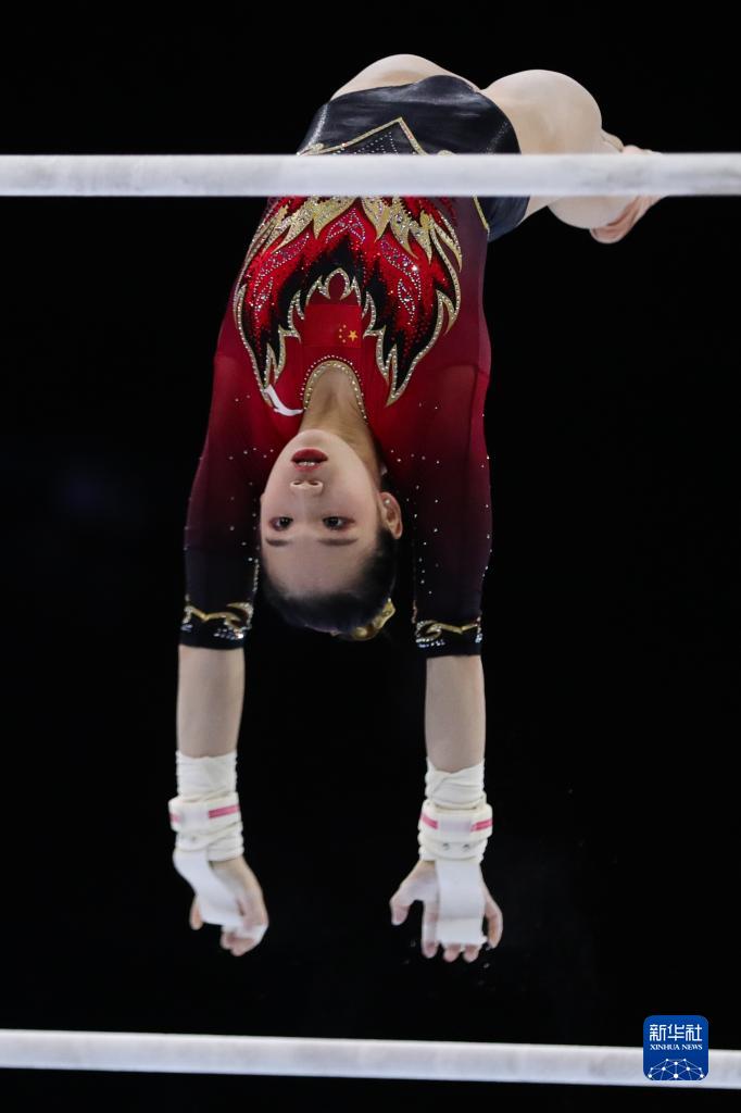 10月2日,中国选手邱祺缘在高低杠比赛中。新华社记者 郑焕松 摄