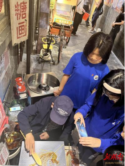 如今超级文和友已经不仅是美食聚焦地,更是长沙的文化地标、城市名片。学生们通过此次研学了解了文和友做龙虾的契机、了解了长沙的饮食习俗,特别让同学们印象深刻的是现场向老师傅请教了非物质文化遗产糖画的历史由来、制作过程等等。