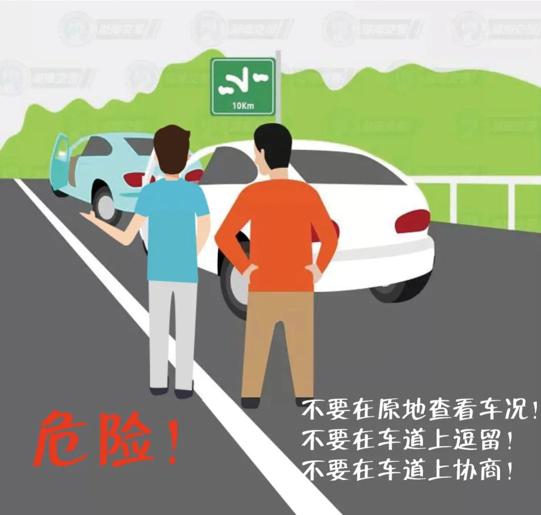 无论车辆能否移动,驾乘人员都不要留在车内,也不要在高速公路上逗留,应迅速转移至护栏外等安全地带。