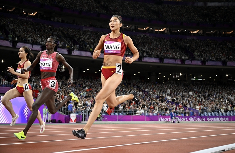中国选手王春雨(右一)在比赛中。新华社记者 宋彦桦 摄