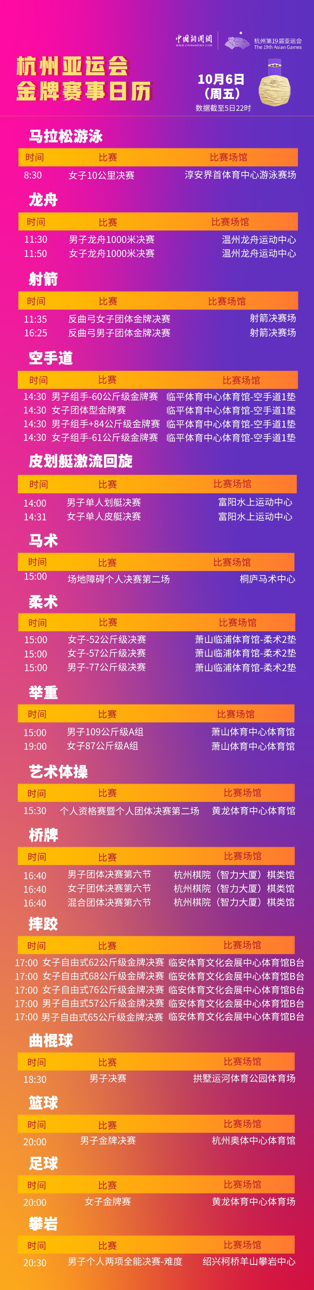 杭州亚运会6日金牌赛程:30金悬念待解 霹雳舞开赛